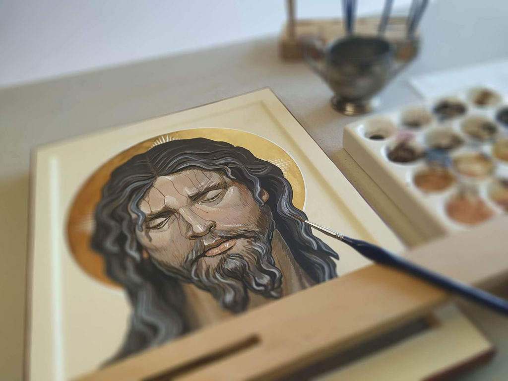 La fe y el arte no tienen fronteras, por eso nos vemos movidos por la ilusión de enseñaros estos nuevos trabajos. Los llamamos «ICONOS» porque eso es lo que son: una imagen sagrada pintada al temple al huevo sobre tabla aparejada con yeso fino y dorada con pan de oro de 22 quilates, respetando la técnica tradicional bizantina como se viene haciendo durante siglos de historia de la Cristiandad. Y «COFRADE» porque la imagen elegida son los rostros de los titulares de las cofradías. Los nuevos rostros de Dios que mueven la fe y los corazones de tanta gente.